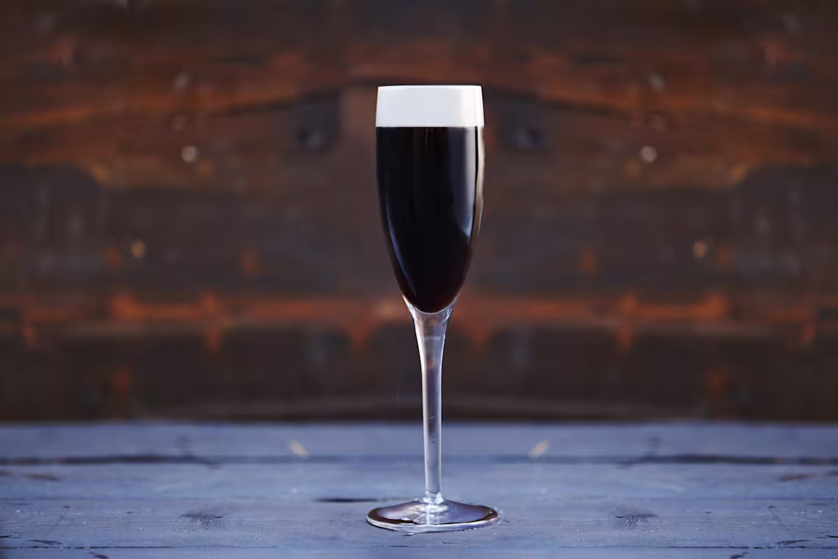 guinness black velvetA curiously silky, velvety drink where the effervescence and dry biscuit notes of sparkling wine provide a curious coupling with Guinness Original, served in a Champagne flute for a touch of decadence.